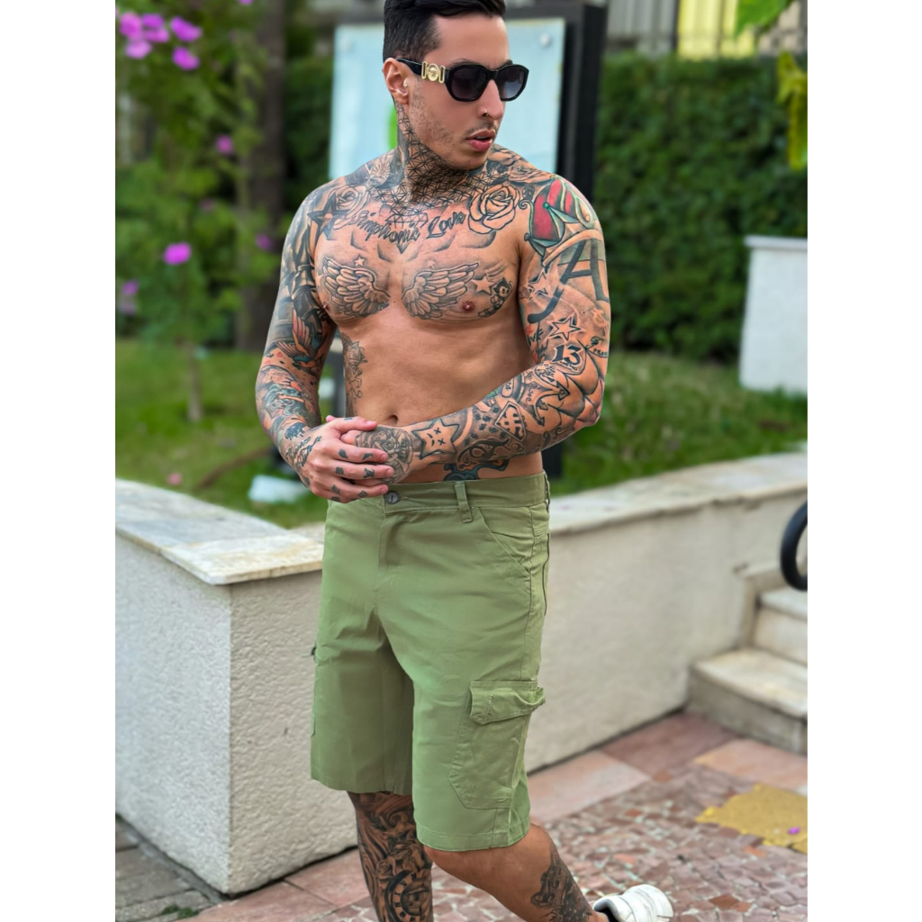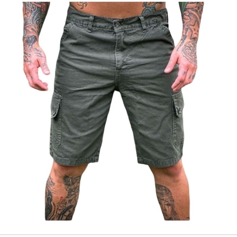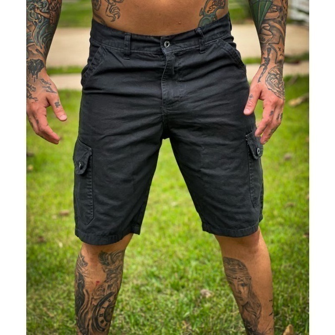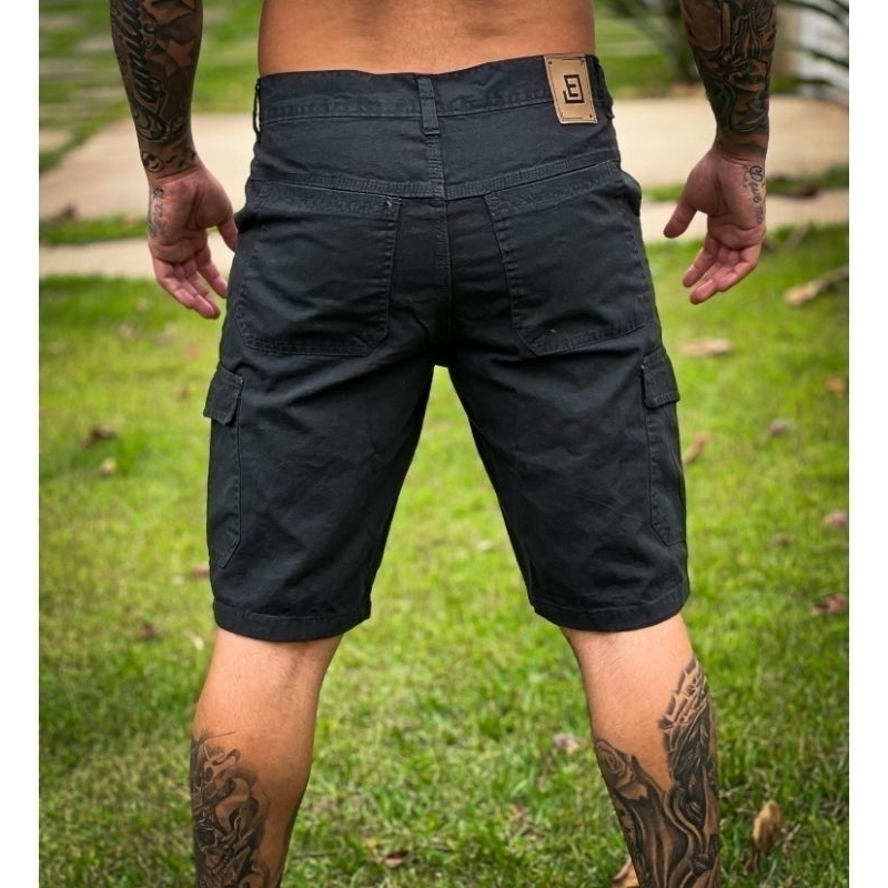 Bermuda cargo masculina com seis bolsos, ideal para homens exigentes que valorizam produtos de qualidade e bom gosto.