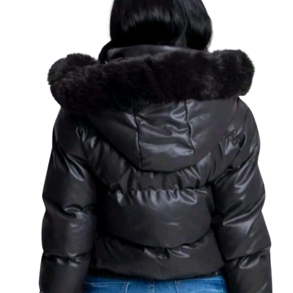 - Jaqueta puffer feminina em couro PU (courino) extremamente grossa e quentinha